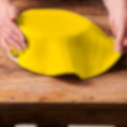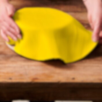 Bereidingswijze: haal de schijf uit de verpakking en rol deze voorzichtig uit. Trek aan beide randen van de witte folie om deze plat te maken. Bedek de cake met een dun laagje botercrème. Plaats de fondantschijf, met de witte folie naar boven, voorzichtig over de cake. Verwijder de folie en strijk de fondant voorzichtig glad op de taart. Snij het overtollige fondant eraf en versier de taart.