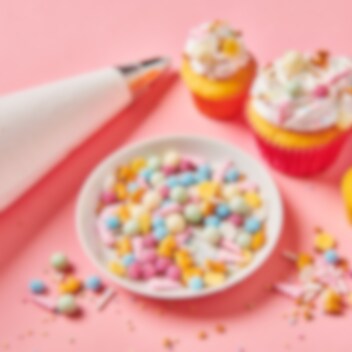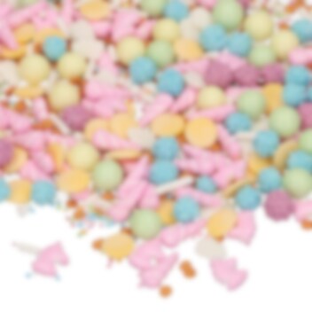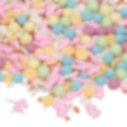 Geef je gebak een magische glans met deze dromerige eenhoornmix! Een prachtige combinatie van pastelkleuren, glinsterende parels en lieve eenhoornfiguurtjes zorgt voor een sprookjesachtige decoratie op cupcakes, taarten en ander feestelijk gebak. Perfect voor eenhoornthema’s en fantasierijke feestjes.