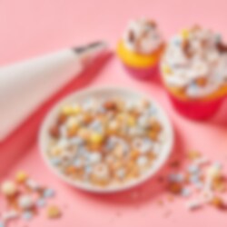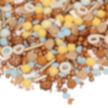 Maak liefdevolle creaties met deze charmante strooiselmix! Een speelse combinatie van lichtblauwe, bruine en gouden decoraties – inclusief kleine hondenbotjes en hartjes – maakt dit de perfecte keuze voor dierenliefhebbers en themafeestjes. Ideaal voor het versieren van cupcakes, taarten en ander gebak.