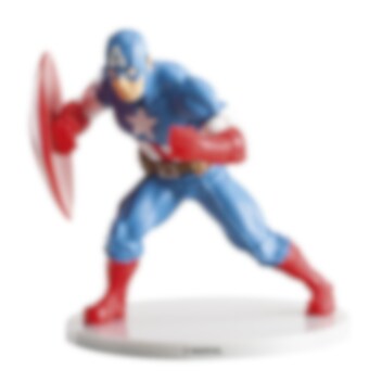 Cool taartfiguur van Captain America. Versier de taart hiermee om het extra spectaculair te maken voor het kinderfeestje. Het taartfiguur is ongeveer 9 cm hoog en is gemaakt van kunststof.