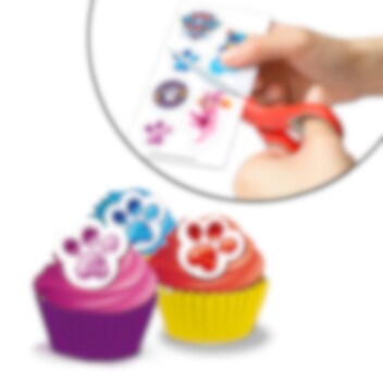 Verpakking met 15 suikervrije decoraties met afbeeldingen uit de tv-serie Paw Patrol. Perfect om taarten of cupcakes mee te versieren tijdens een kinderfeestje in Paw Patrol-thema.