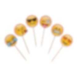 Emoji taart toppers bevatten 24 kleine prikkers met verschillende Emoji houten stokjes. Wordt geleverd met 6 verschillende Emoji's, 4 van elk, en is perfect om in de taart te doen, maar ook in cupcakes, muffins en ander gebakjes. Lengte ongeveer 7 cm.
