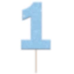 12 stuks prikkers met motieven van blauwe glinsterende cijfers 1. Leuk om de taart of muffins mee te versieren als het tijd is voor een 1 jaar verjaardagsfeestje. De prikkers zijn ongeveer 9,5 cm lang.