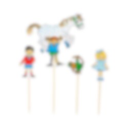 4 caketoppers met heerlijke afbeeldingen van Pippi Langkous. Ze zijn perfect om taarten en muffins mee te versieren. Ze zijn gemaakt van hout en karton.