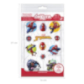12 stuks suikervrije muffindecoraties met afbeeldingen van Spiderman. Versier de muffins hiermee om ze extra leuk te maken voor het Spiderman-kinderfeestje.