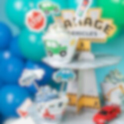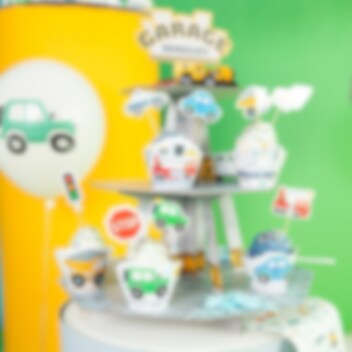 Creëer een leuk gevoel met deze muffinstandaard die een garage voorstelt voor allerlei soorten voertuigen. Hij past perfect bij een kinderfeestje met een voertuigthema en is gemaakt van stevig karton met een afmeting van 46 x 34 cm.