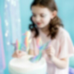3 caketoppers in zeemeermin thema gemaakt van glinsterend karton. 18-24,5 cm.