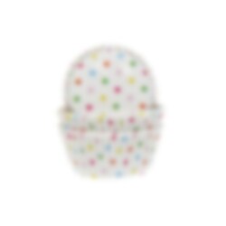 50 muffinvormpjes van de fabrikant House of Marie met motieven van verschillende kleurrijke stippen. Deze muffinvormpjes zijn gemaakt van extra stevig kwaliteitspapier. Het geeft een zeer goed bakresultaat en ze behouden hun vorm en kleur tijdens het bakken.