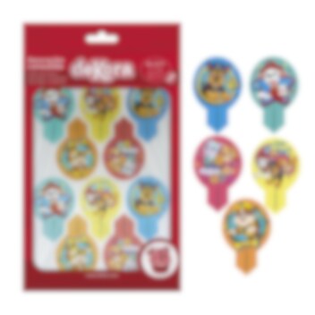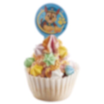 20 muffindecoraties van ouwel met verschillende afbeeldingen uit de tv-serie Paw Patrol. Perfect om cupcakes of muffins mee te versieren tijdens een kinderfeestje in Paw Patrol-thema. De decoraties hebben een diameter van ca. 4,5 cm.