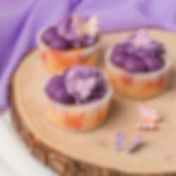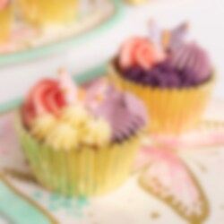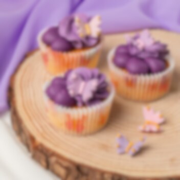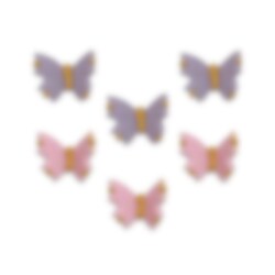 Suikerdecoraties met de voorstelling van 6 kleurrijke vlinders die een mooie versiering vormen op de taart voor het kinderfeestje.