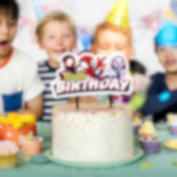 Caketopper van karton met de tekst "Happy Birthday" en leuke afbeeldingen van Spidey and His Amazing Friends! Hoogte ongeveer 13 cm.