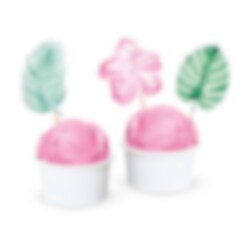 Geef muffins, cupcakes en andere lekkernijen een zomerse en tropische sfeer met deze leuke muffinsdecoraties. Met afbeeldingen van groene bladeren en roze bloemen passen ze perfect bij een zomerfeest, zwembadfeestje, Hawaïaans kinderfeestje of andere feestelijke gelegenheden met een kleurrijk thema.