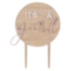 Deze prachtige houten cake topper met de tekst "It's a Girl" is de perfecte decoratie voor je babyshower of gender reveal feest. Met afmetingen van 12 x 18 cm en gemaakt van duurzaam hout, zal het een charmante toevoeging zijn aan je taart.
