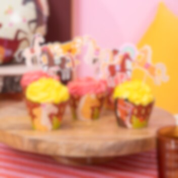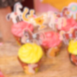 Versier cupcakes, taart of traktaties met deze leuke cake toppers in paardenthema. De set bevat alles van galopperende paarden tot hoefijzers, rozetten en bekers – ideaal voor een feestelijke sweet table met stalthema. De decoraties zijn ongeveer 11 cm hoog en gemaakt van hout en karton.