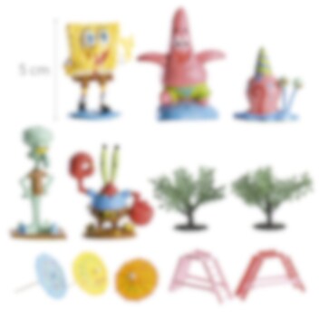 Maak de verjaardagstaart extra feestelijk met deze kleurrijke taartdecoratieset! De set bevat 12 gedetailleerde figuren en decoraties, waaronder SpongeBob, Patrick, Octo, Meneer Krabs en andere iconische elementen uit Bikinibroek. Perfect om een fantasierijke taart te creëren voor kleine en grote fans van de populaire serie.
