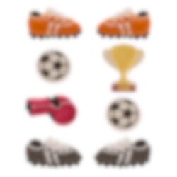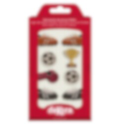 Deze gedetailleerde suikerdecoraties met voetbalsport-thema zijn perfect om een winnende taart of cupcakes te maken voor alle kleine en grote voetbalfans. De set bevat 8 decoraties in de vorm van voetballen, voetbalschoenen, bekers en andere sportieve afbeeldingen – ideaal voor een feestelijk accent op je gebak.