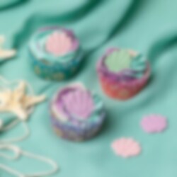 6 mooie suikerdecoraties die kleurrijke schelpen voorstellen. Perfect om je gebakjes mee te decoreren. De suikerdecoraties zijn ongeveer 2 cm in diameter.
