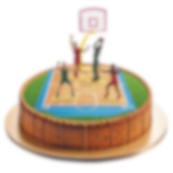 Maak een indrukwekkende taart met basketbalthema! Met deze leuke taartdecorateset kunt u een gewone taart eenvoudig omtoveren tot een klein basketbalveld waar de spelers om de bal onder de mand vechten.
