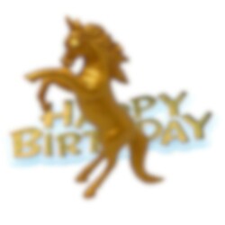 Mooie taartdecoratie van een gouden eenhoorn en een bijbehorend bordje met de tekst "Happy Birthday". De eenhoorn is ongeveer 9 cm hoog en het tekstbord is ongeveer 6 x 3 cm groot.