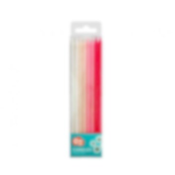 Verander elk feest in een sprankelende viering met deze 24 glinsterende taartkaarsen in een heerlijke roze mix. Deze 14,5 cm hoge taartkaarsen zijn een perfecte combinatie van traditie en trend, en ze zullen een vleugje glamour toevoegen aan je taart.