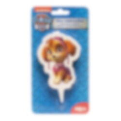 Mooie taartkaars met een afbeelding van Skye uit Paw Patrol. Perfect om de verjaardagstaart mee te versieren voor een kinderfeestje. De kaars is ongeveer 7,5 cm hoog en 5,5 cm breed.