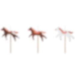 Breng de verjaardagstaart naar nieuwe hoogten met deze 3 stuks taartkaars met paarden. De taartkaarsen zijn 6 x 4 cm groot.
