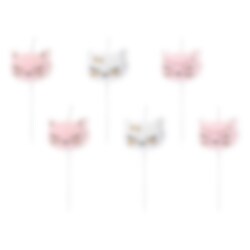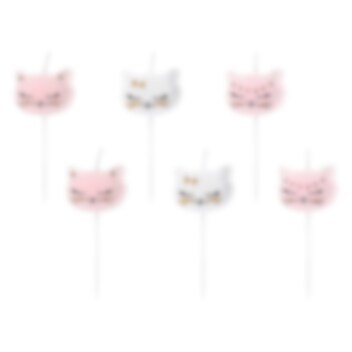 6 leuke taartkaarsjes met afbeeldingen van 3 verschillende schattige katten in de kleuren roze en wit. Perfect om je taart mee te versieren voor een kinderfeestje met een kattenthema. De kaarsjes zijn ongeveer 5 cm hoog.