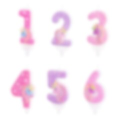 Vier de verjaardag met deze kleurrijke cijferkaarsen met een afbeelding van schattige eenhoorns! De taartkaarsen zijn 10 cm hoog en beschikbaar in de cijfers 1 tot en met 6.