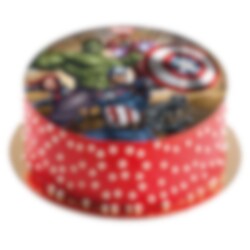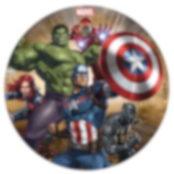 Mooie taartprint van suikervrije fondant met afbeeldingen van de superhelden uit de Avengers. De taartprint is klaar om direct op de taart te plaatsen en heeft een scherpere print dan een taartprint van ouwel. De taartprint heeft een diameter van ongeveer 16 cm.