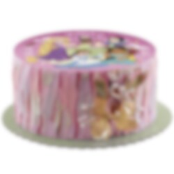 Mooie taartprint van heerlijke suikervrije fondant met de schattige Disney-prinsessen erop. De taartprint is klaar om direct op de taart te plaatsen en heeft een scherpere print dan een ouwelprint. De taartprint heeft een diameter van ongeveer 15,5 cm.