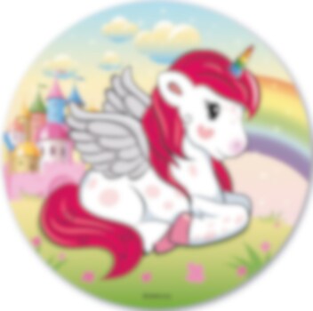 Mooie taartprint van ouwel met een afbeelding van een schattige eenhoorn. Bak je eigen taart met deze stijlvolle afbeelding. De taartprint met een diameter van 20 cm is eenvoudig in gebruik.