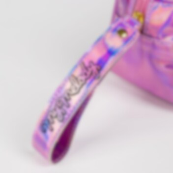 Deze glanzende toilettas met My Melody in het zwart is een stijlvol en schattig accessoire voor elke tas! Perfect voor make-up, haaraccessoires of andere kleine spulletjes. De metallic paarse buitenkant in combinatie met My Melody's charmante uitstraling maakt het zowel praktisch als trendy, ideaal voor school, reizen of dagelijks gebruik.