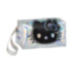 Deze glanzende toilettas met Hello Kitty is een stijlvol en charmant accessoire voor elke tas! De zilverkleurige metallic buitenkant, gecombineerd met Hello Kitty’s zwarte gezicht en glinsterende strik, zorgt voor een moderne en speelse look. Perfect voor make-up, haaraccessoires of kleine spulletjes.