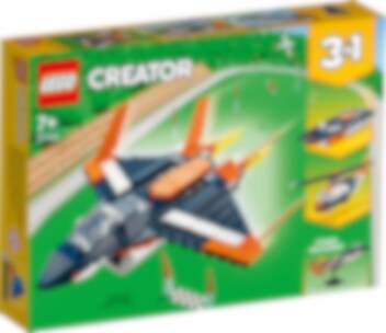 Met deze fantastische LEGO® Creator 3in1 Supersonisch straalvliegtuig (31126) bouwset kunnen kinderen vanaf 7 jaar en ouder genieten van spannende speelactie hoog in de lucht of op het water. De set bestaat onder andere uit een supersnel straalvliegtuig met een cockpit, inklapbare wielen, vlammen die uit de motoren komen en een standaard om het vliegtuig op uit te stallen. LEGO speelgoed voor fantasierijk speelplezier LEGO fans die gek zijn op razendsnelle actie kunnen met deze LEGO Creator 3in1 set 3 verschillende authentieke modellen bouwen, en ermee spelen natuurlijk. Zij kunnen een speelgoedstraaljager bouwen en deze ombouwen in een helikopter of een speedboot. Of ze kunnen de 215 onderdelen gebruiken om hun eigen coole voertuig te creëren. Een digitale ervaring voor LEGO bouwers De speelgoedset bevat interactieve, digitale bouwinstructies om de bouwervaring nog leuker te maken. Deze kun je vinden in de LEGO Bouwinstructies app voor smartphones en tablets. Kinderen kunnen de zoom- en draaifuncties gebruiken om het model tijdens het bouwen te bekijken.