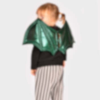 Groene drakenvleugels die een coole toevoeging aan je Halloween-kostuum zijn. Gemaakt van 100% polyester en hebben een stalen frame aan de bovenkant voor extra vorm en stabiliteit. De vleugels hebben elastische schouderbanden en een mooie groenmetallic afwerking. Geschikt voor kinderen van ongeveer 2 tot 14 jaar.