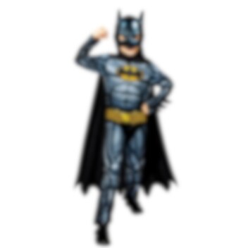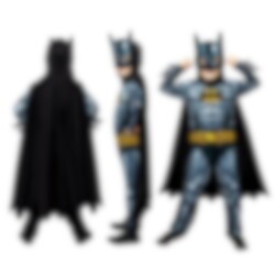 - Inhoud: Jumpsuit met gedetailleerde Batman-prints, een zwarte cape en een masker.