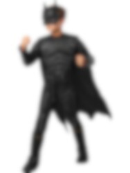 Batman The Movie Kostuum Deluxe bevat een gewatteerde jumpsuit met stijlvolle details en bijbehorende overschoenen, riem, cape en een half masker.