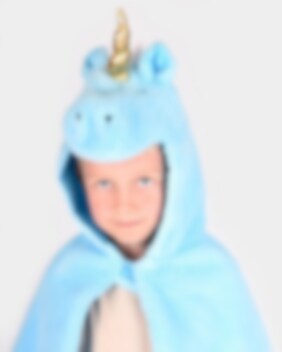 Voel je als een magische eenhoorn met deze Blauwe Eenhoorn Cape Kostuum voor kinderen. De cape is zacht en knuffelig, gemaakt van pluizig pluche en komt met een licht gewatteerde capuchon versierd met een gouden hoorn. Mouw en staart in nepbont en klittenbandsluiting bij de hals completeren je magische look.