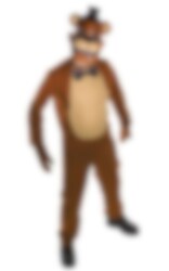 Het Five Nights at Freddy's kostuum bestaat uit een dunne fleece overall in Freddy's kleuren, een paar eenvoudige wanten en een plastic gezichtsmasker dat op zijn plaats wordt gehouden met een elastische band. Grappig kostuum van een beroemd personage uit de populaire game van Scott Cawthon. Schoenen niet inbegrepen. Dit is een officieel gelicenseerd product.