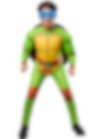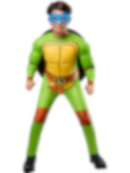 Klaar om samen met je favoriete ninja-schildpadden misdaad te bestrijden? Met dit 4-in-1 kostuum van de Ninja Turtles kan je kind kiezen om Leonardo, Donatello, Raphael of Michelangelo te zijn. Het kostuum heeft een gewatteerde borst en armen voor een gespierde uitstraling, en een afneembaar schild aan de achterkant voor extra actie.