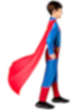 Met dit klassieke Superman-kostuum verandert je kind in de man van staal. Het iconische logo, de kleurrijke opdruk en de rode cape zorgen voor een heldhaftige uitstraling – perfect voor verkleedpartijtjes, Halloween of fantasierijke superheldenavonturen.