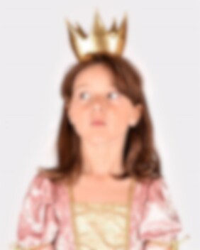 Deze elegante prinsessenkroon in goudkleurige stof met vulling is het perfecte accessoire om je prinsessenlook af te maken.
