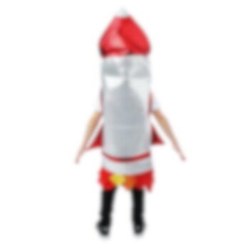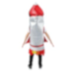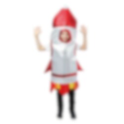 - Bevat: Raketkostuum met gezicht- en armopeningen en onderste deel versierd met vlammen die raketmotoren imiteren.