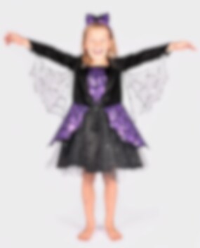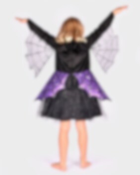 Voel je een moedige en avontuurlijke spinnenheldin met dit Spidergirl Kostuum voor kinderen. De jurk zit vol met fijne details zoals een glinsterende rok, een plastic spin op de borst en transparante vleugels onder de mouwen versierd met zilveren pailletten. De bijpassende diadeem met een paarse strik en plastic spin maakt je look helemaal af.