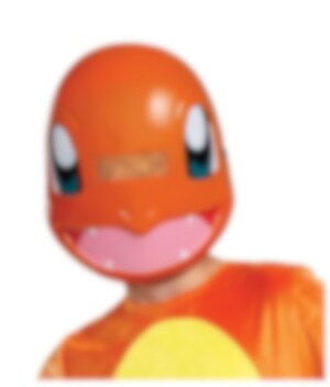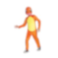 Charmander is klaar voor verkleden en plezier! De oranje jumpsuit met gele buik en het kunststof masker zorgen voor een warme en herkenbare Pokémon-look die kinderen meteen herkennen.