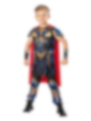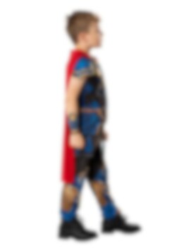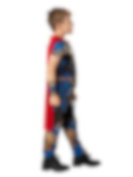 Voel je als de machtige dondergod van Marvel met dit Thor Deluxe Kostuum voor kinderen. Het kostuum omvat broeken met digitaal gedrukte beenbeschermers, aparte digitaal bedrukte handschoenen met schuimrubberen achterkant, en een afneembare, lange rode stoffen cape. Perfect voor kleine superhelden. Schoenen zijn niet inbegrepen.
