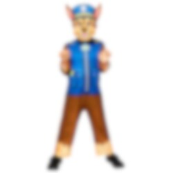 Nu kun je snel veranderen in Chase van Paw Patrol. Het kostuum bestaat uit een jumpsuit met print en bijpassend gezichtsmasker. Het kostuum is verkrijgbaar in twee maten voor kinderen tussen 3 jaar en 6 jaar. Het kostuum is gemaakt van 100% polyester en is vooraf gewassen met een licht bevochtigde spons. Schoenen zijn niet inbegrepen.