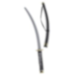 Maskerade-accessoires in de vorm van een paar katana-zwaarden in zwarte kleur met gouden glinsterende details. De zwaarden kunnen op de rug worden gehangen. Perfect te combineren met het ninjakostuum. De zwaarden zijn gemaakt van plastic en zijn elk ongeveer 71 cm lang.