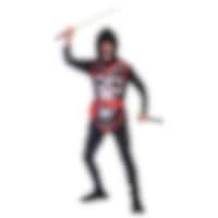 Stoer kostuum dat gegarandeerd in de smaak valt bij kinderen die van Ninja's houden. Het kostuum komt in rood en zwart met leuke patronen en is verkrijgbaar in twee verschillende maten voor kinderen tussen 4-6 jaar en 7-8 jaar. Het kostuum is gemaakt van 100% polyester. Let op! De ninjamessen zijn niet inbegrepen. 4-6 jaar is ongeveer 110/116 cm lang 7-8 jaar is ongeveer 122/128 cm lang