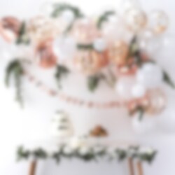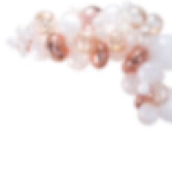 Schattige ballonnenboog in roségoud en wit tinten die je zelf bouwt. Een werkelijk indrukwekkende decoratie die geschikt is voor kinderfeestjes, feestjes of bruiloften. De verpakking bevat in totaal 70 stuks ballonnen in verschillende maten en accessoires. De ballonnenboog is ongeveer 4 meter lang.